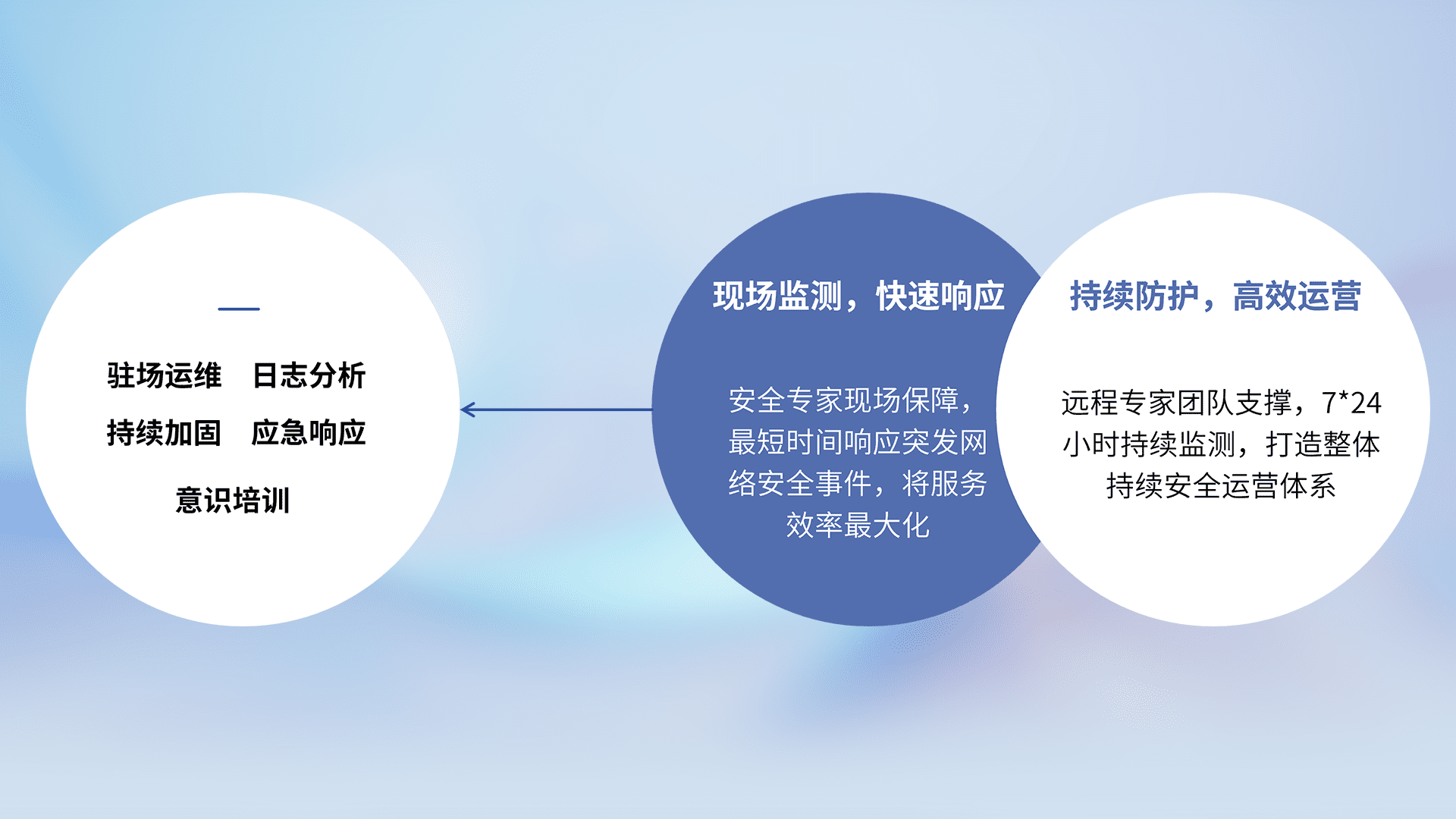 针对客户行业特性,,,,提供专属的一站式安全管理服务,,,帮助客户全面感知网络空间威胁,,通过安全专家的线上、、、线下防护支持,,实现风险闭环,,将安全保障常态化,,,为客户打造常态化安全运维运营服务。。。